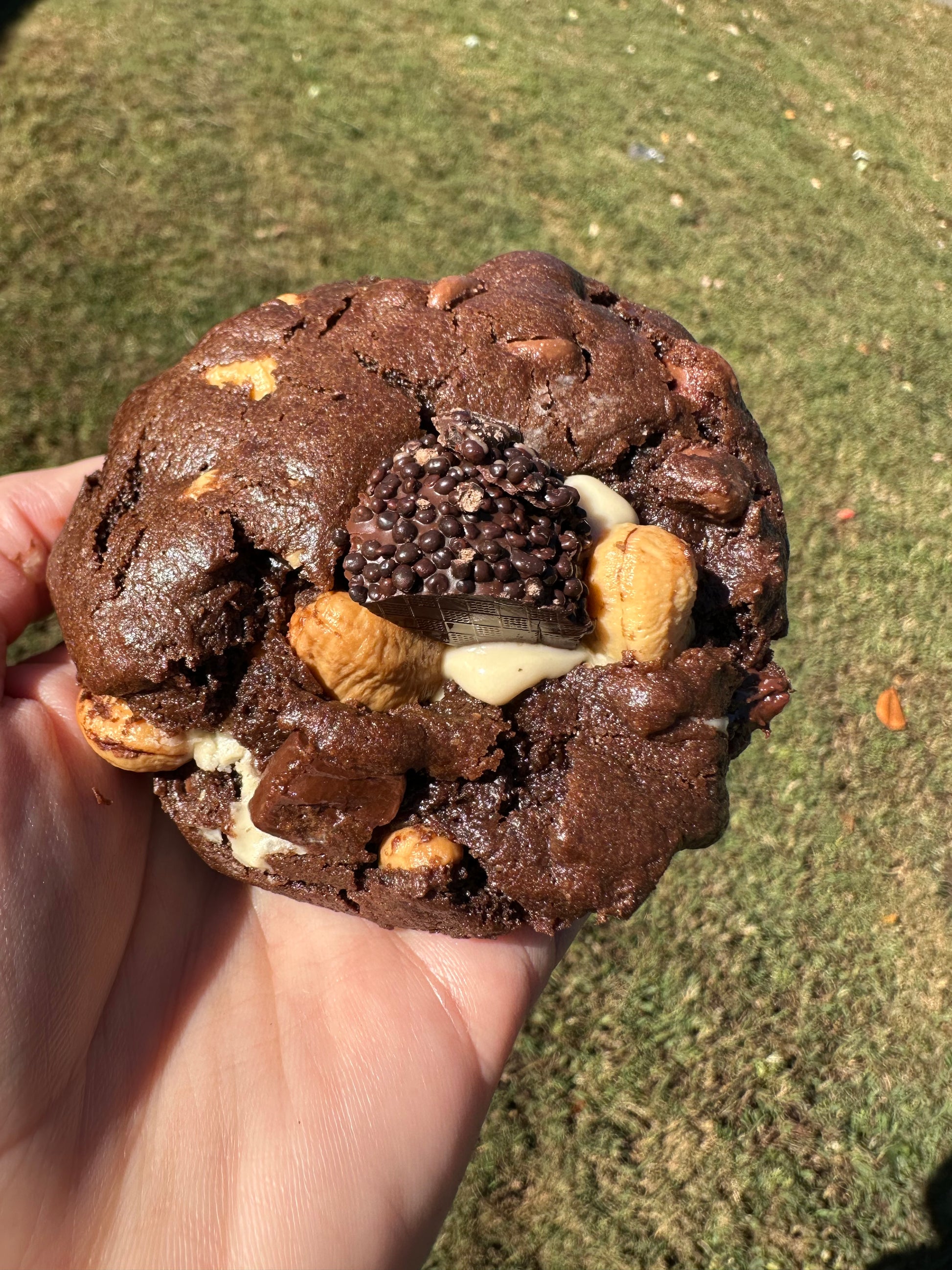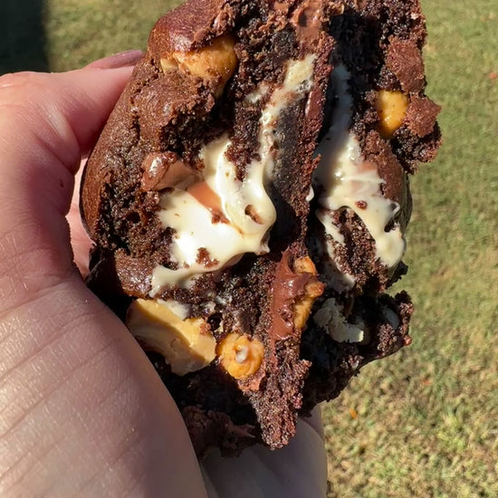 Producto hecho a mano. Ingredientes generales: chocolate, harina de trigo, azúcar, mantequilla, huevos, cacao en polvo, polvos leudantes, vainilla y sal.