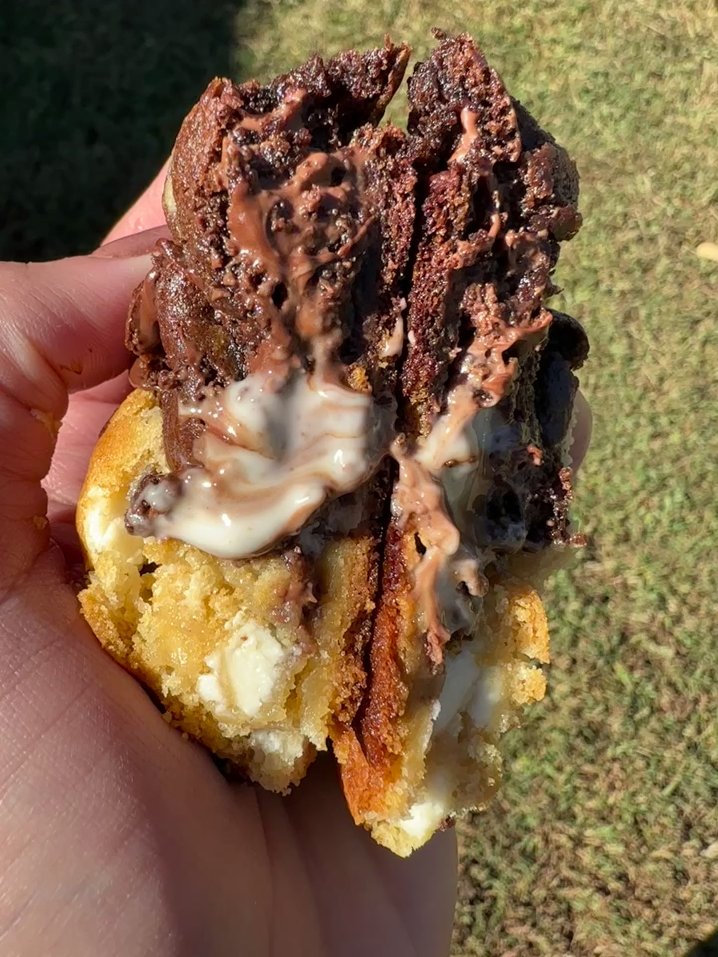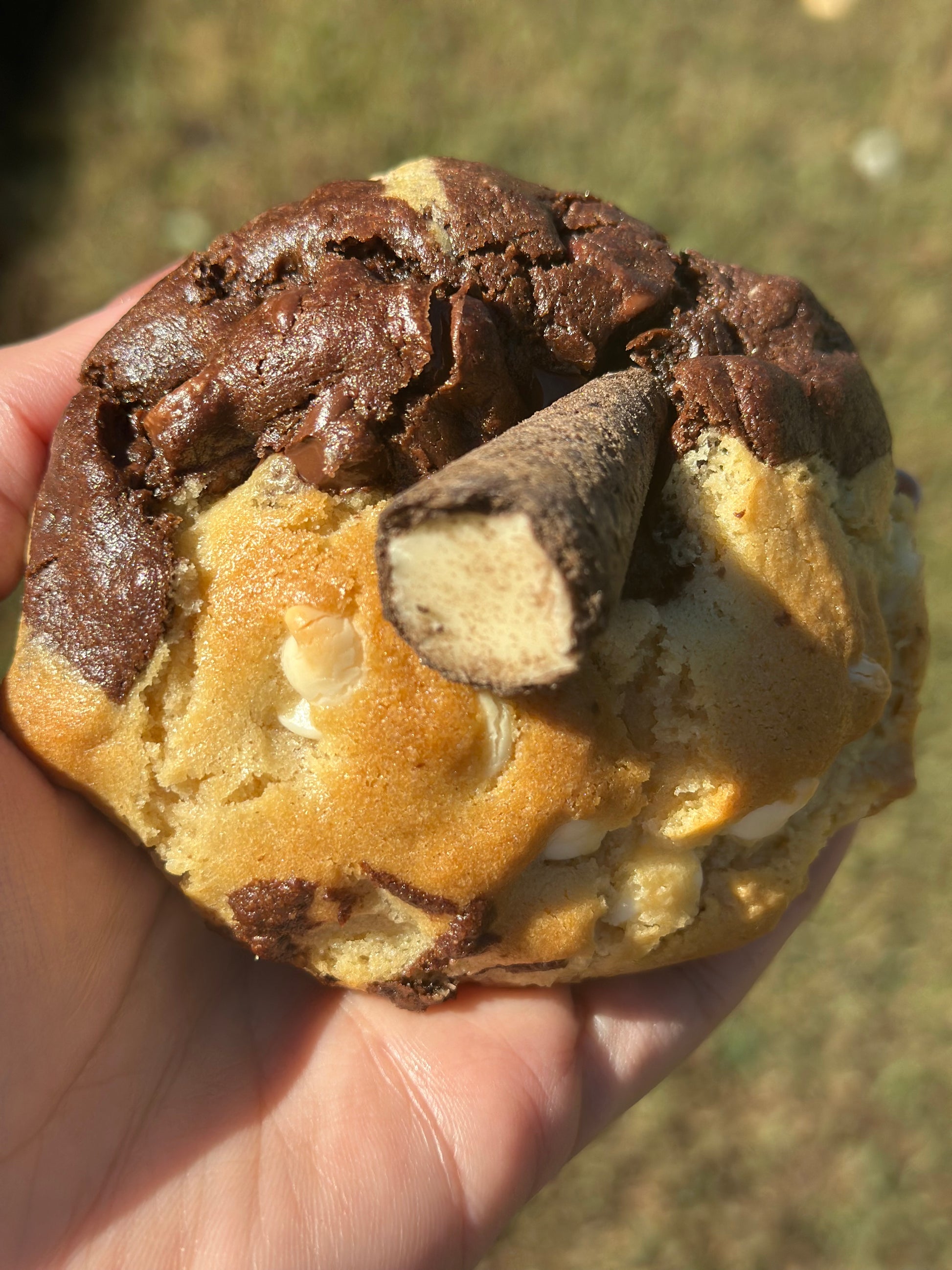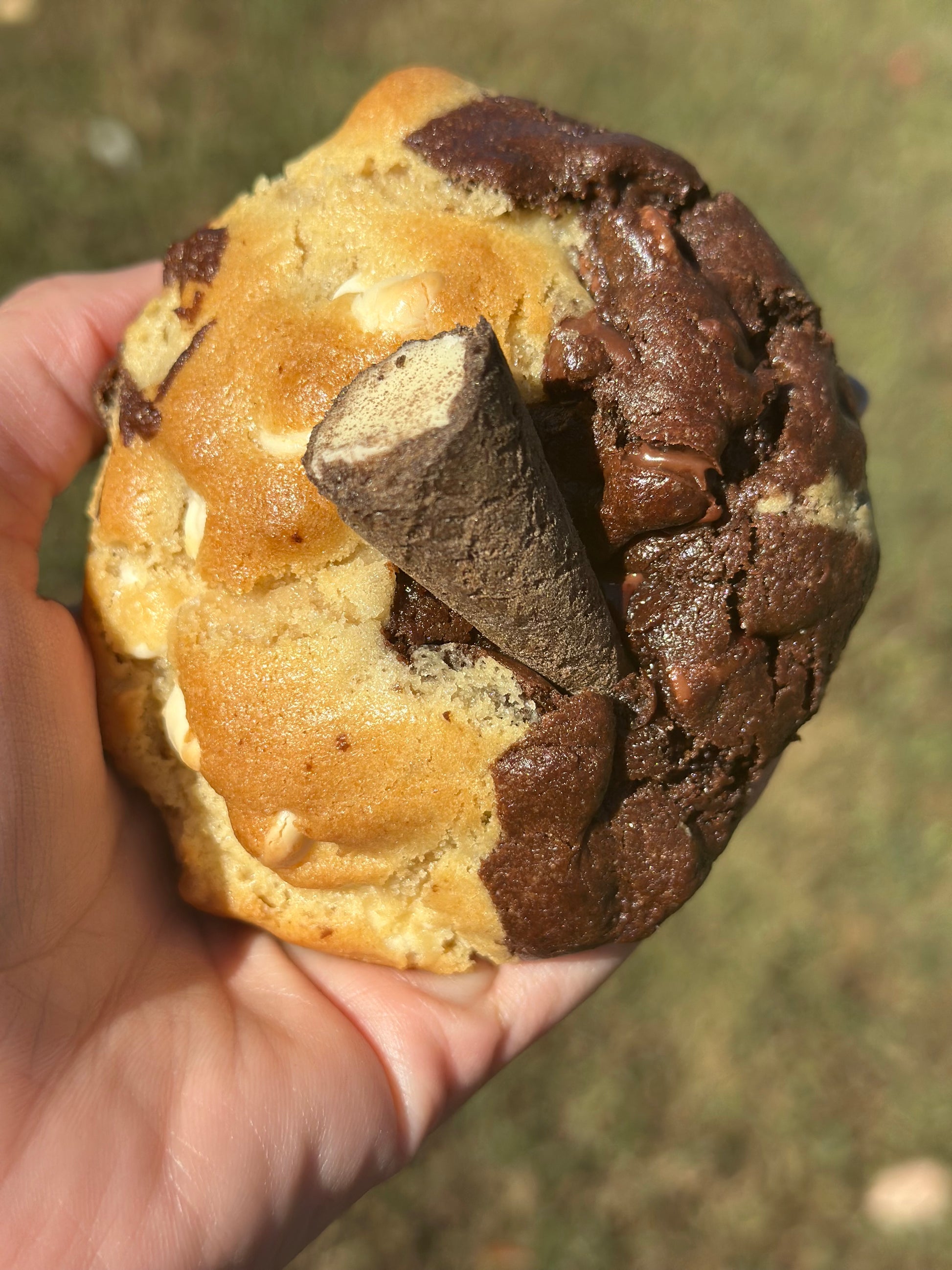 Deliciosa galleta mixta mitad vainilla chocolate blanco y mitad chocolate con chocolate semi dulce y exquisito relleno de kinder bueno que amarás